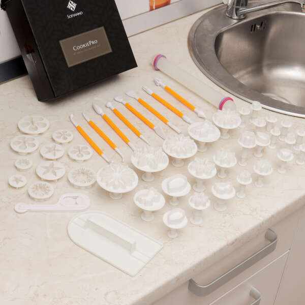 El único set CookiePro para elaborar pasteles y decoraciones de la masa fondant es muy fácil de usar y no requiere conocimientos previos.